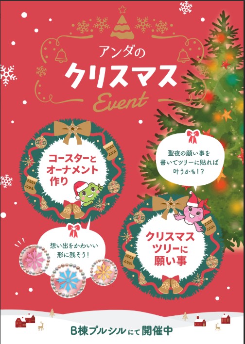 Merry Christmas!✨️🎅✨️ 今年も心あたたまるクリスマスイベントを開催いたします!🎄🎅 クリスマスイベントは盛りだくさんの内容となっております🌟 🎄オーナメント&コースター作り🎄 オリジナルのクリスマスオ […]