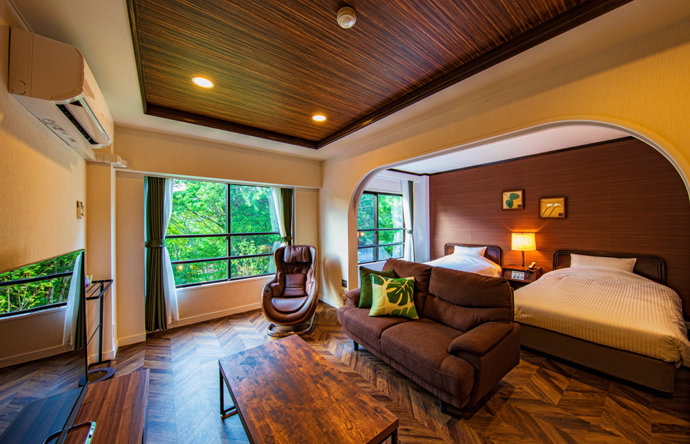 | 客室設備 | バストイレ別(温水洗浄機付きトイレ)・大型テレビ・冷蔵庫・電子レンジ・Wi-Fi・加湿空気清浄機・お子様用アメニティー類(ベビーベッド・おもちゃ・おむつ用ゴミ箱・補助便座・ベビーソープ・ボディーソープ・哺乳瓶洗浄セット)・ブルーレイプレーヤー・携帯充電器・ヘアアイロン・マッサージチェア・セーフティBOX・ドライヤー・ステップ台 |