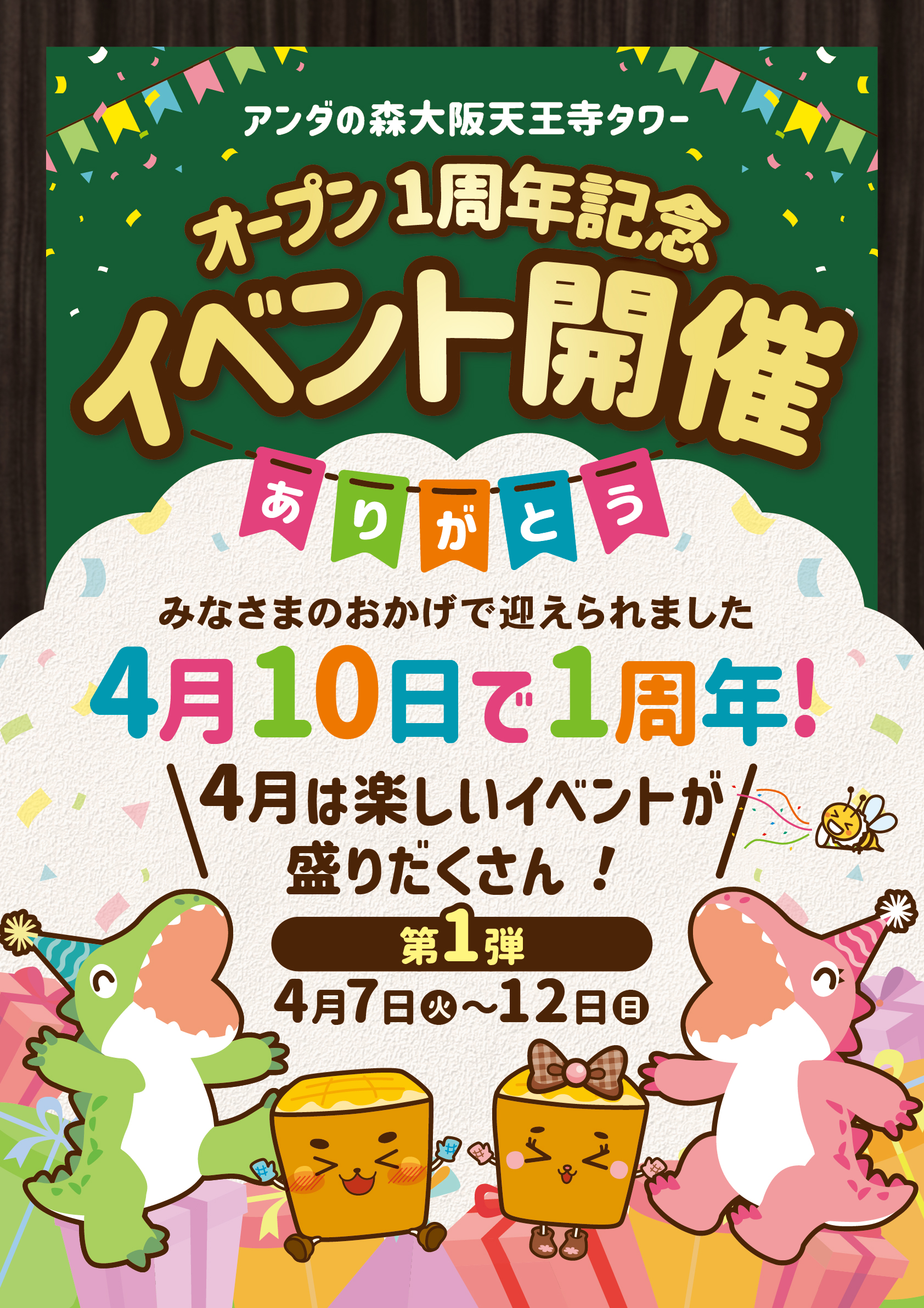 アンダの森大阪天王寺タワーは、おかげさまでは4月10日をもちましてオープン1周年を迎えます。