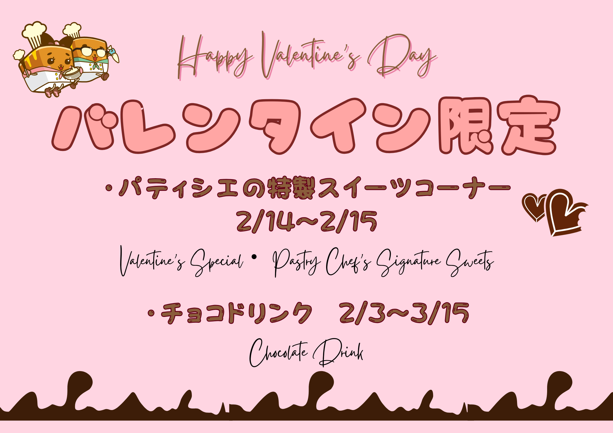 朝食およびディナービュッフェにバレンタイン特別デザートが登場。